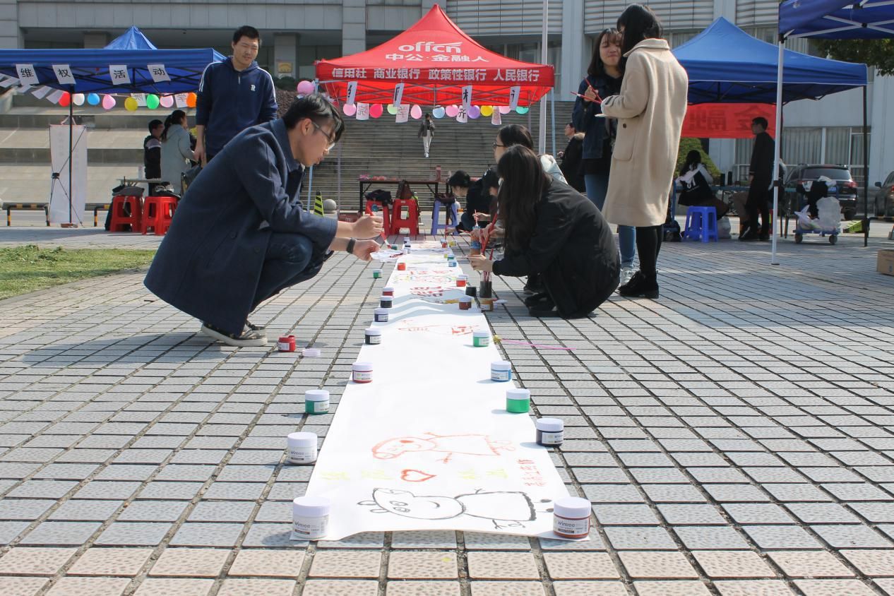 下午2点,各学院活动帐篷附近聚集起了前来参加活动的同学。该活动旨在通过游戏的形式,让同学们了解侵犯消费者权益的行为、以及作为消费者该如何维权,寓教于乐,起到知识普及的效果。本次活动分为“权益答题”“猜物品价格”“知识竞答”“你来比划我来猜”以及“绘画标语”共五个游戏。每个游戏的优胜者都可获得游戏主办学院的印章,集齐一定数量的印章可以参与抽奖或换取奖品。买球的app官网“绘画标语”游戏帐篷处聚集的同学尤为众多,大家都跃跃欲试,纷纷加入游戏当中。这个游戏来自于经济1604班同学的创意,每个参与游戏的同学都被分发到一个颜料画盘,需要写一句有关维权的标语在一张25米的白纸上并画画装饰,内容丰富、色彩明艳的将会获得买球的app官网的印章。这个游戏可玩性强,考察了同学们的创造力以及想象力,增强了同学们的合作能力,同时也提升了同学们的维权意识。游戏完毕后,优秀者将获得我们院的特制明信片,获奖作品将在微信公众号上进行宣传。