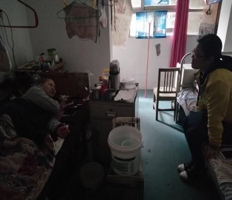 上午8点,志愿者们在34栋楼下集合,随后集中前往武汉紫阳街工程营敬老院。生活在敬老院的老人们是非常孤单的,他们渴望有人能陪伴他们,和他们说说话。志愿者们的到来让他们枯燥的生活增添了许多乐趣,他们热情的问候、热心的帮忙让老人非常感动。在敬老院的一楼,志愿者们一边陪老人聊天,一边热火朝天地帮老人们打扫卫生,擦洗厨房用具,清理空调风扇的灰尘。他们主动为老人服务。抢着帮助老人解决生活中的困难,不怕累,不怕苦。住在二楼的刘奶奶,因为患了眼疾而失明,生活很不方便,志愿者们陪刘奶奶聊天,帮她剪指甲,给她唱歌。刘奶奶虽然看不见,但手一直牵着志愿者的手,开心地和志愿者聊天。另一间房间里,胡阿姨因为身体原因,只能躺在床上,志愿者们陪胡阿姨聊天,胡阿姨很健谈,和志愿者讲了很多她的经历,志愿者也给她描述外面的天气,帮助胡阿姨下载她喜欢看的节目。志愿者们的所作所为令胡阿姨十分感动。
