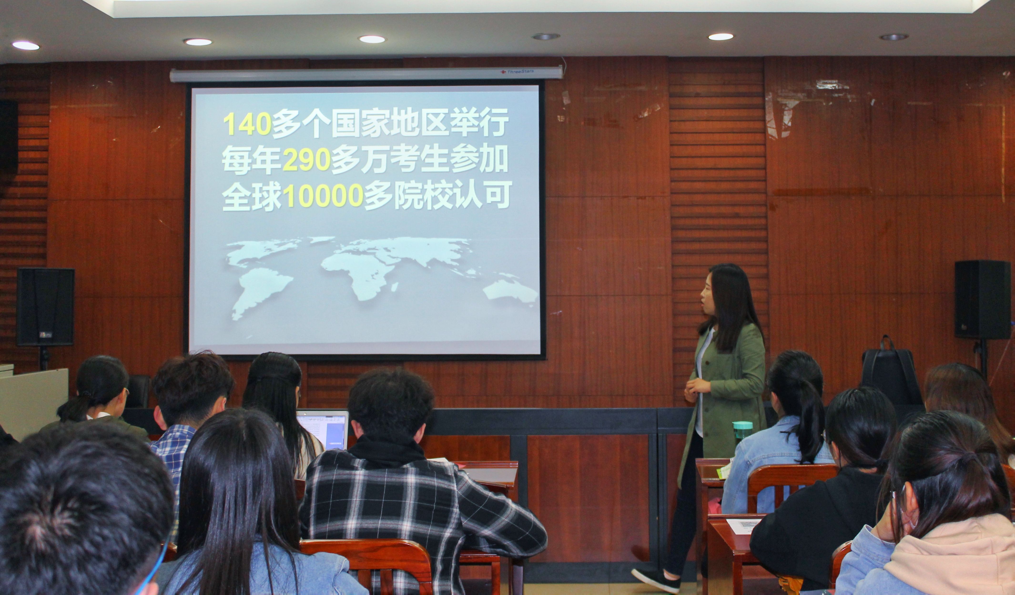 随后,周老师给同学们介绍了征服国外名校的方法,国外名校在看重学生学校背景、大学成绩、雅思托福成绩、GRE成绩等硬实力之外还关注学生的科研项目、论文发表、实践经历、奖学金、志愿活动等软实力,因此想申请名校的同学在努力学习提升成绩和英语水平的同时还要积极参加志愿者活动和实践活动,让自己的硬实力和软实力同步增长,为成功进入心仪的学校打下良好的基础。