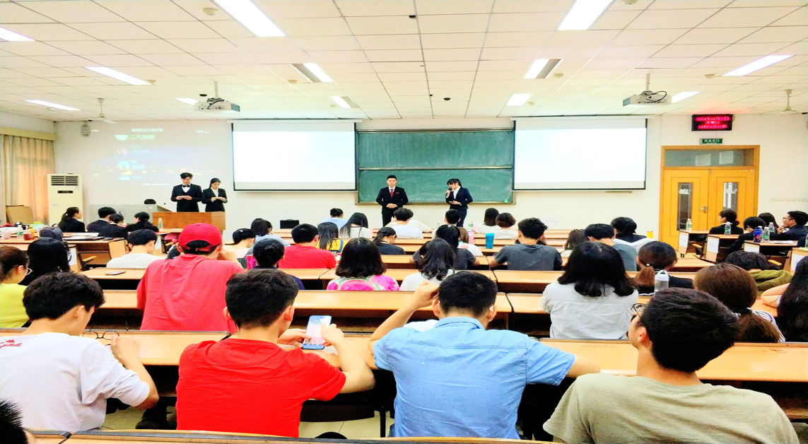 首先,周玉振同学、何凯妮同学宣布第二届职场礼仪大赛决赛正式开始,并介绍了出席本次比赛的评委和嘉宾。接着,周玉振同学介绍了对本次比赛的赛制,本次比赛共分为职场穿搭、主题演讲、情景模拟三轮,每轮过后都由评委进行点评,最终结合复赛成绩以及线上投票成绩评选出团队奖和个人奖。