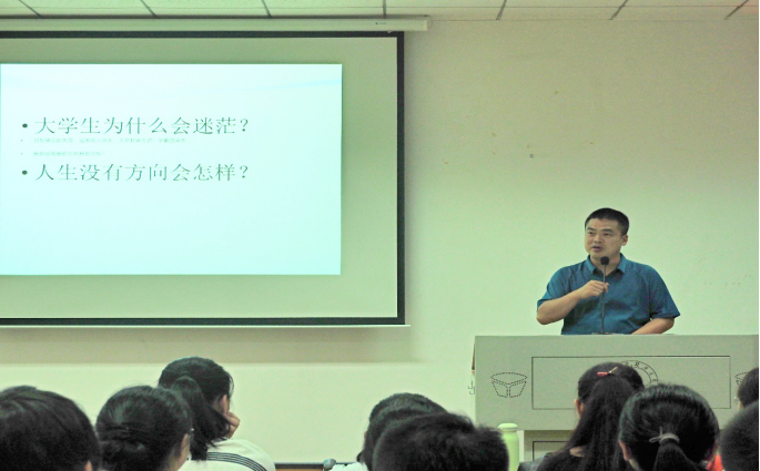 詹书记以“你是否感觉到迷茫?”为开端,向大家进行提问,引出本次新生教育的目的,即给大家“打预防针”,使同学们在迷茫的时刻能够感受到动力。随后,詹书记为各位同学指明了大学与高中在学习上的差异,表示同学们因没有调整好学习习惯导致考试失利,丧失优越感,便容易产生迷茫。詹书记通过趣味图片以及实际案例指出解决迷茫的根本方法便是确定目标,为自己指明方向。而同学们作为当代大学生,必然应当热爱祖国,从爱家、爱校做起,遵守道德、敬畏法律、学会感恩、懂得奉献、完善自我。