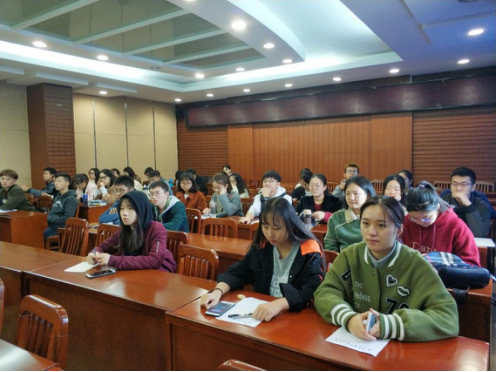 讲解完中国改革开放四十年来的成就,詹书记将话题转入国际,从中美贸易战入题,讲述美国开展贸易战的原因。詹书记用一系列美国科技成就的数据解释为什么美国要和中国在贸易上进行对抗。通过一系列的介绍,同学们明白了关于贸易摩擦,美国并不是仅仅针对中国,而是针对所有影响其利益的国家。随后,詹书记通过对海外时局的介绍,鼓励同学们了解时事,关注世界时局变化。最后,詹书记希望当代大学生能够树立正确价值观,不怕挫折,脚踏实地地学习。
