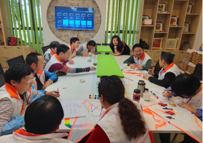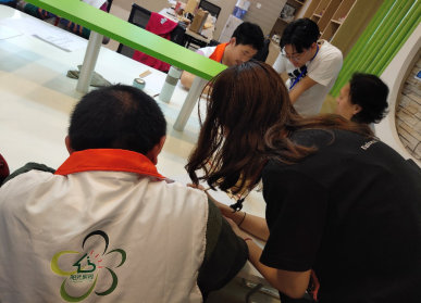 志愿者们组织“大朋友”们自行分组,给每一组分发风筝和水彩,让他们自行创作。志愿者们也将一些简笔画的图案打印出来供他们参考。“大朋友”们的画画功底真是不容小觑,他们临摹着样本,在风筝上画出了小青蛙、小狮子等各种图案。同时充分发挥自己的想象,画出了黄色的云朵,七彩的小兔子。有些“大朋友”不太自信,害怕自己画的不够好看,志愿者们便拿起笔和他们一起画,并且毫不吝惜自己的赞美,帮助他们找到自信。