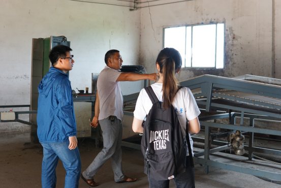 抵达合作社后,调研队10人分成三组分别展开调研:两组同学前往村中农户家进行问卷调研,另外一组同学跟随袁亮亭理事长和村委会治保调解委员胡志祥一起前往亮亭合作社所管辖的桔园和初加工生产车间参观。