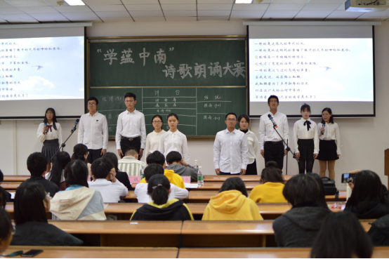 本次“学蕴中南”之“奋斗的我,最美的国”诗歌朗诵大赛为同学们提供了展示自我的平台,让同学们深入体会了爱国主义情怀,增强了班级凝聚力,有利于同学们形成团结合作的意识。