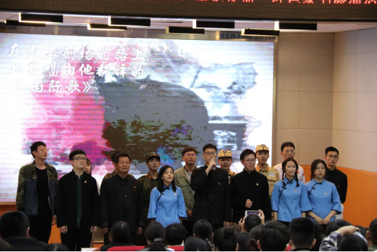 此次活动由各学院表演队依次上台展示。首先上台表演的是公共管理学院,演员们生动再现了王尔琢在《托孤书》中表露的“以身许国”的心迹。紧接着是工商管理学院带来瞿秋白《致妻书》的故事表演,在表演的最后演员们齐声歌唱,令人回味无穷。随后金融学院带来《无字书》,展现战火中的纸短情长和革命信念。