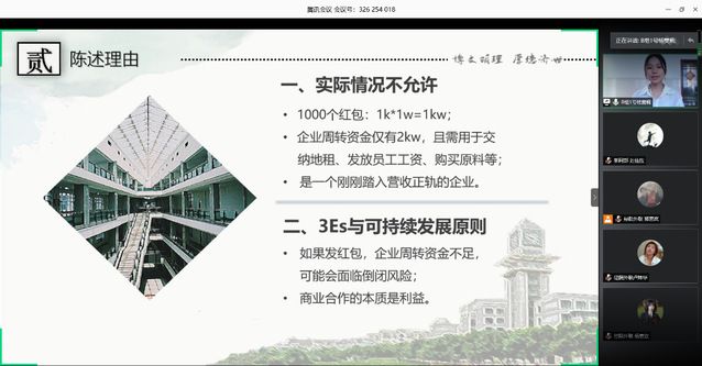 虽然线上会议会出现不可避免的网络问题,但选手们克服困难,都有着出彩的表现,最终,来自买球的app排行榜前十名推荐的陈晓琪等六名同学晋级决赛。通过本次线上比赛,同学们对职场礼仪有了更深入的了解,提高了职场综合素质。