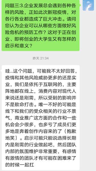 8月19日,项目组通过微信聊天的方式对吃喝茶山刘“小茶”进行了线上访谈,作为曾经的Leader,她对吃喝茶山刘的发展状况也是十分了解,并陪伴着吃喝茶山刘走过了一段路程。