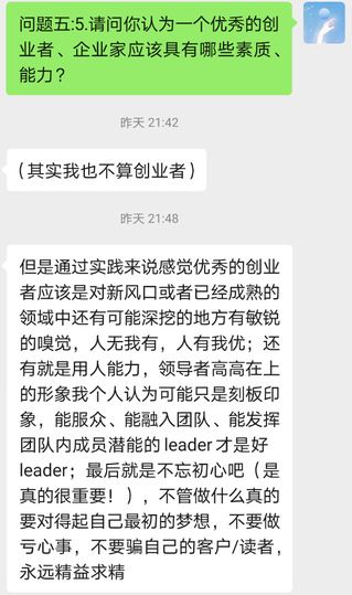 谈到大学生创业,“小茶”认为:优秀的创业者首先应该是对新风口或者已经成熟的领域中还有可能深挖的地方有敏锐的嗅觉的人,人无我有,人有我优;其次则是用人能力,领导者高高在上的形象只是刻板印象,能服众、能融入团队、能发挥团队内成员潜能的leader才是好leader;最后就是不忘初心,不管做什么真的要对得起自己最初的梦想,永远精益求精。