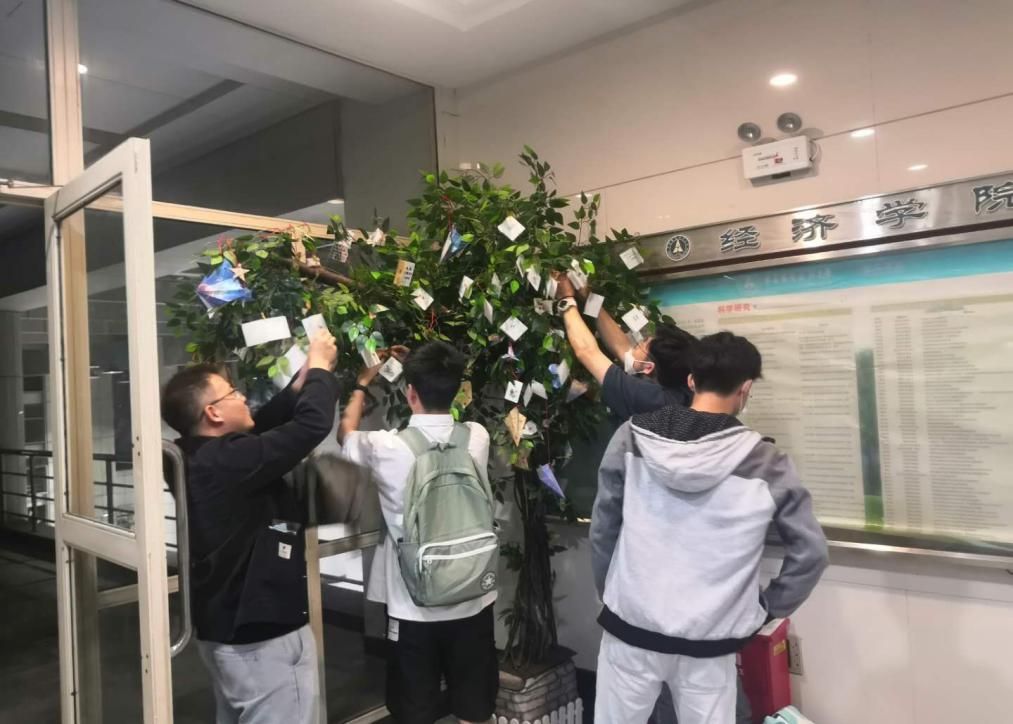 晚八点时,活动进行到第二个环节——放飞对祖国的美好祝福。我们将写满祝福的贺卡和纸飞机都挂在了长青树上,愿我们伟大的祖国像这棵长青树一样充满勃勃生机和希望!
