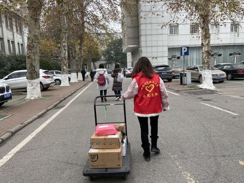 上午10点,活动小组成员于中南楼集合完毕。活动共分为两个部分。第一部分,活动小组成员11人分成3组,各自携带提前分配好的物资分别前往这次活动的3个不同目的地:第一组人员带着成员们提早包装好的寒冬小礼包前往南苑垃圾中转站,与在此处歇息的环卫工人交谈并向他们表达慰问及感谢之情。第2组小组成员则负责用奶茶杯泡好茶水,将成员们写好的卡片跟茶水一起送给为同学们默默付出的门卫大叔、安保人员、宿管叔叔阿姨们。第三组人员则前往教学楼,将准备好的茶包放置饮水机上,为前来上课的同学们带去温暖。在活动进行一个小时后,活动小组成员在菜鸟驿站集合,进行活动的第二部分:帮助在驿站拿多个包裹的同学,解决其包裹难运送的问题。