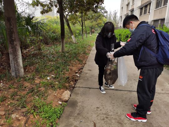 由于刚下过雨,天气比较冷,地上也是湿滑的,但小组成员们始终怀揣着志愿服务的热情,积极参与其中,秉持“不怕脏、不怕苦、不怕累”的精神,将沿途看到的废纸、饮料瓶、包装袋、香烟头等垃圾一一捡起并放入了自备的塑料袋中。他们都在努力为建设绿色校园贡献自己的一份力量。