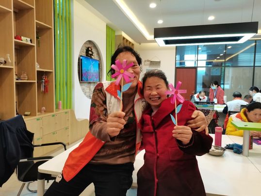 随着大朋友们各样作品的完成,本次活动接近尾声,大朋友们热情未消,纷纷拿起自己的作品,与小组成员们合影留念,并想要将自己的作品放入橱窗中,至此本次暖阳之约活动圆满结束。