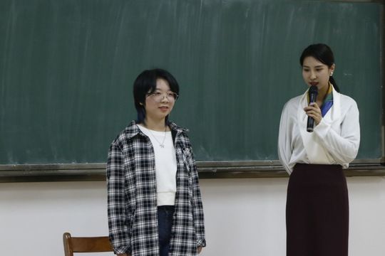 首先,夏心雨同学向同学们简要说明了“职行中南”职场礼仪大赛的赛程赛制,并介绍了本次培训会的主讲嘉宾张荟卿老师。曾担任去年线上培训会主讲嘉宾的张荟卿老师表示非常高兴能够受邀参与本次线下培训会,并用幽默风趣的语言鼓励大家积极互动。