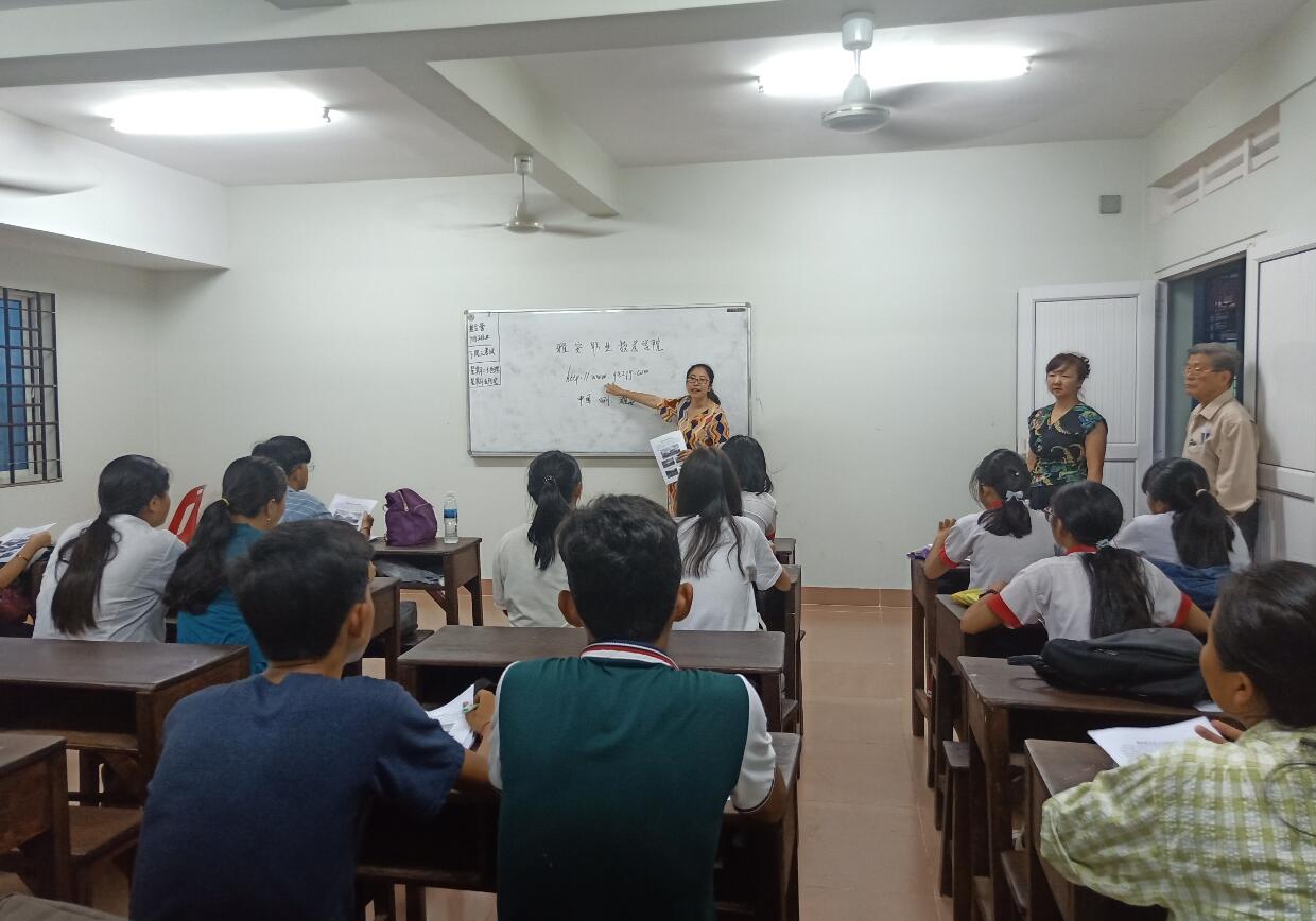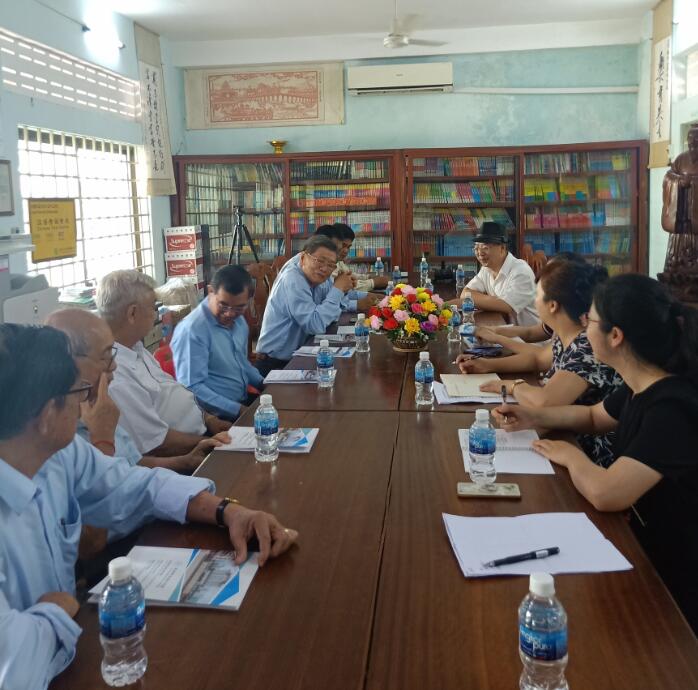 During the visit, the delegation visited the old and new campuses of the public Zhongshan School in Siem Reap, Cambodia, and had a discussion and exchange. President Xie Nanxing, President Chen Jinhe, consultant Weng Pingguang, and principal of Zhongshan Public School Chen Shiyang attended the symposium. Fu Hongtao introduced the basic situation of running a school in our school, and introduced and interpreted the relevant matters about the enrollment of foreign students in academic and non-academic training courses in Chinese language and literature, tourism management, acupuncture and massage and other majors. Chen Shiyang introduced the basic situation, school-running model and operation status of the public Zhongshan school, and expressed his support for the project of recruiting international students in our school. Chen Jinhe said that the two sides should strengthen cultural exchanges and cooperation, deepen mutual understanding and carry out mutual visits. The two sides carried out in-depth exchanges and negotiation, and reached a preliminary consensus. The school said that it will actively do a good job in the publicity and publicity work of our school to recruit international students.