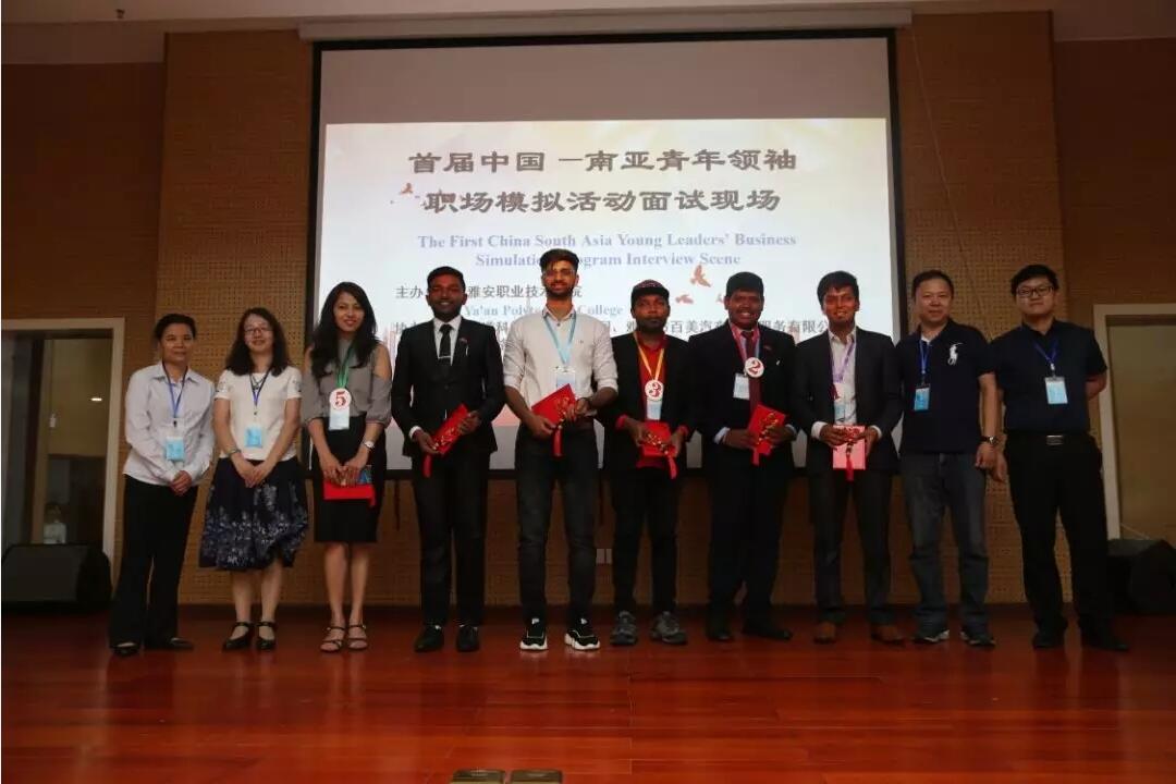 On 19 September, the first China-South Asia Young Leaders Career Simulation Event was successfully held at the Youth Road Campus. The event was hosted by the college, co-organized by Xindao Technology Co., Ltd, Ya'an Baimei Auto Sales & Service Co., Ltd, Ya'an Glas Photoelectric Technology Co., Ltd and Zhong Gong Education, with Yang Shanghai, Director of Sichuan Talent Exchange Centre, Hao Lan, Director of Ya'an Talent Exchange Centre, Song Lizhi, member of the Party Committee of the college and Director of Adult Education and Training Department, Song Feng, Director of Admissions and Employment Department, 23 young leaders from India, Nepal, Sri Lanka, the 23 representatives of youth leaders from four countries of India, Nepal, Sri Lanka and Maldives and 10 representatives of young students from the Chinese side, all members of the College's Student Innovation and Entrepreneurship Club and representatives of students from the Department of Education, the Department of Travel and Economics and the Department of Nursing attended in total more than 200 people.