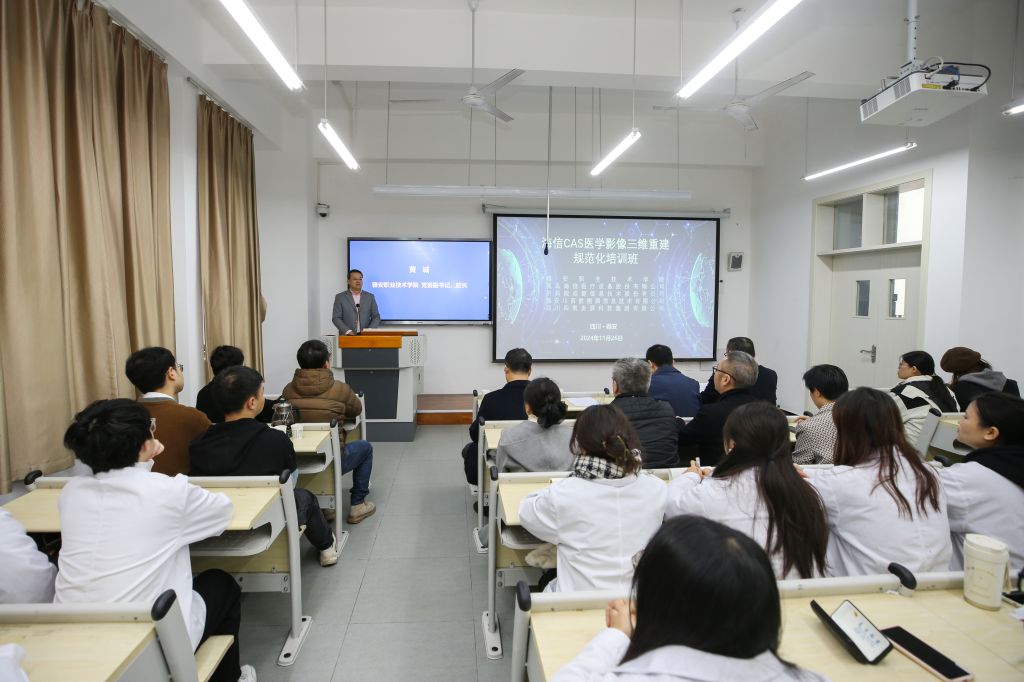为推动医学影像技术专业数字化转型,提升人才培养岗位适应性,11月26日上午,学校在人工智能医学影像三维重建生产性实训基地启动第一期海信CAS医学影像三维重建规范化培训工作。学校党委副书记、校长黄诚,党委常委、副校长樊先茂,副校长彭裕红及青岛海信医疗设备股份有限公司研发负责人李和意、西南区负责人周强,四川四凯发展科技集团有限公司副总经理文德永出席开班仪式,鸭脖相关专业50余名师生成为首批受训学员。开班仪式...