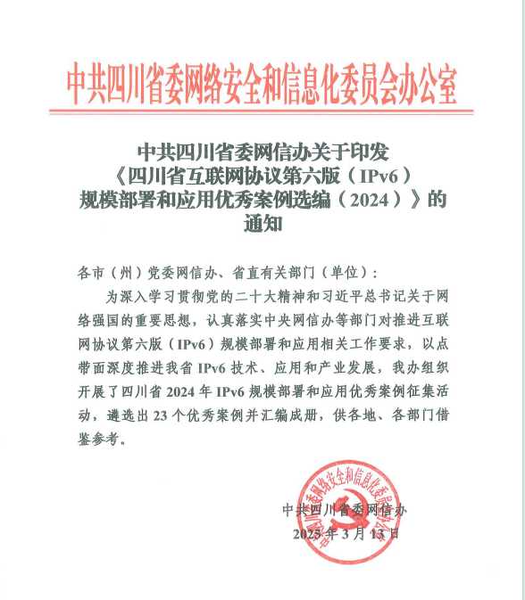 03-14-2025鸭脖获评四川省2024年互联网协议第六版(IPv6)规模部署和应用典型案例