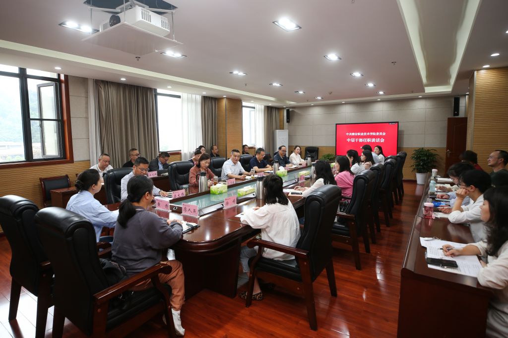 10月10日上午,在经开区校区303会议室,学校召开中层干部任职谈话会。学校党委书记李春模,党委副书记、校长黄诚,党委副书记杨洪媛,党委常委、纪委书记张军,以及岗位调整中层干部和相关部门负责同志参加会议,党委副书记杨洪媛主持会议。会上,党委组织部负责同志宣布了干部职务任免通知。岗位调整干部分别作了表态发言,表示坚决服从学校党委决定和组织安排,尽快转换角色、熟悉岗位工作,在新的岗位上加强学习、履职尽责,...
