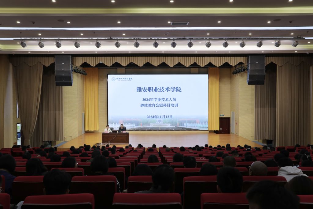 为贯彻落实国家专业技术人员继续教育相关政策、法规要求,深化专业技术人才知识更新工程,提升专业技术人才队伍的综合素质与创新能力,11月12日下午,学校2024年度专业技术人员继续教育公需科目培训在经开校区聚雅厅举行,本次培训由党委常委、组织部部长、人事处处长刘永恩主持,全校200余名专业技术人员参加。本次培训特邀学校党委常委、副院长陈冬冬作专题授课,培训主题为《数字经济背景下的高等职业教育发展》。课程首先介...