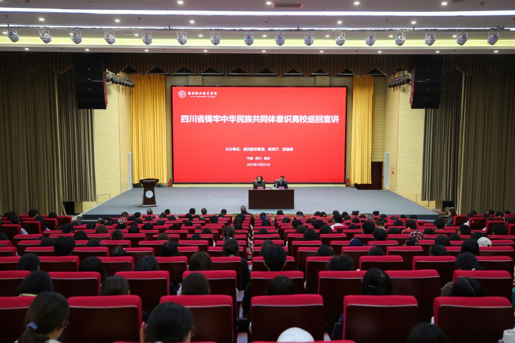 为进一步铸牢中华民族共同体意识教育,促进各族师生交往交流交融。10月21日下午,“四川省铸牢中华民族共同体意识高校巡回宣讲活动”在学校经开区聚雅厅举行。本次活动特邀四川省铸牢中华民族共同体意识高校巡回讲堂三年行动宣讲团成员、中共雅安市委党校副校长、四川长征干部学院雅安夹金山分院副院长杨建学担任主讲嘉宾。学校党委常委、宣传统战部部长、工会主席夏安琼出席并致辞,各二级学院党组织书记、相关职能部门负责人...