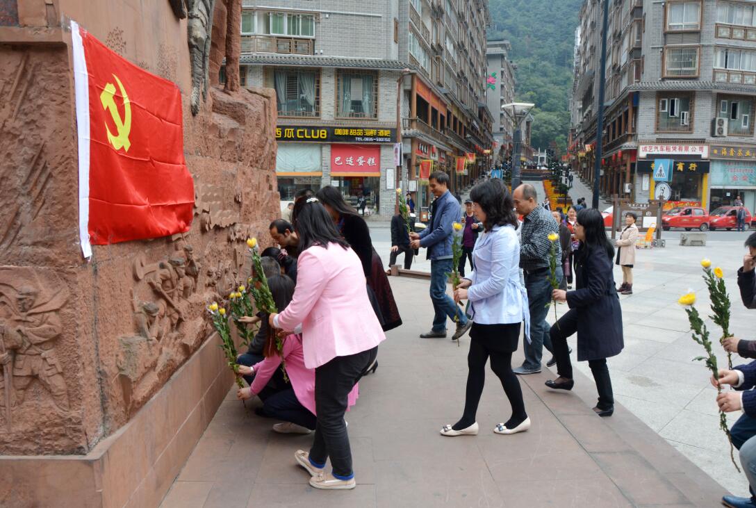 【本网讯】为纪念中国工农红军长征胜利80周年,重温革命历史,弘扬长征精神,我院师生开展了系列纪念活动。10月18日,学院党委副书记付洪涛、学院党委委员副院长樊先茂带领组织宣传部党支部、办公室党支部教职员工前往芦山县4•20芦山强烈地震纪念馆、宝兴县红军长征翻越夹金山纪念馆参观学习,重温入党誓词。