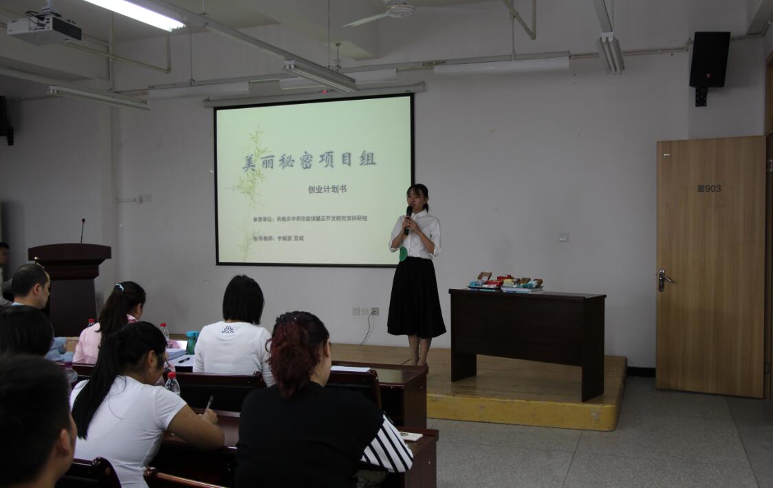 大赛在“美丽秘密”创业项目的展示中拉开帷幕。参赛选手准备充分,清晰地阐述了自己的创业梦想与创业计划,并针对评委老师的提问进行了积极的答辩。吴洁老师就各团队的项目作了精彩的点评。