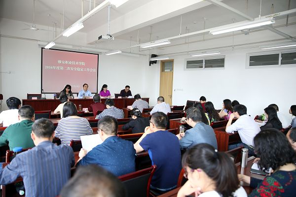 【本网讯】5月13日下午,我院在图书馆903会议室召开2016年安全稳定第二次工作会议,会议贯彻了省市有关安全稳定工作指示精神,分析了当前安全稳定工作面临的形势和存在的问题,对下一步安全稳定工作进行了部署。学院党政领导及各部门、系部党政负责人和部分教研室主任参加了会议。会议由党委委员、副院长樊先茂主持。
