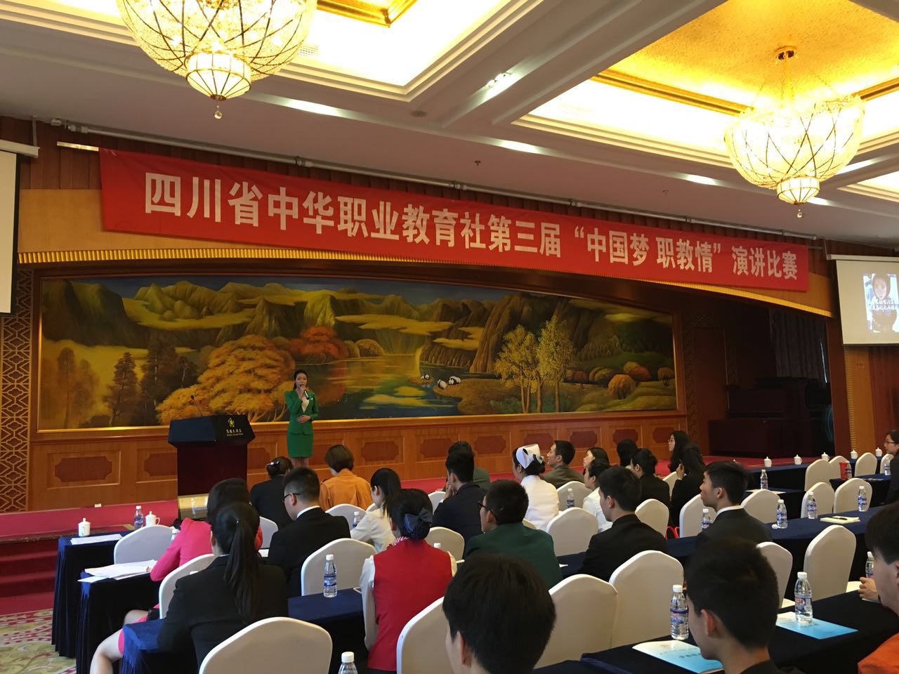 【本网讯】4月8日,由四川省中华职业教育社主办的第三届“中国梦·职教情”演讲比赛在德阳举行。来自全省的15所高职院校、12所中职院校参加了比赛。经过激烈角逐,来自我院教育系学前教育专业2015级1班的周钰琳以出色的表现夺得高职组二等奖,其指导老师高运荣获得“优秀指导老师”称号。
