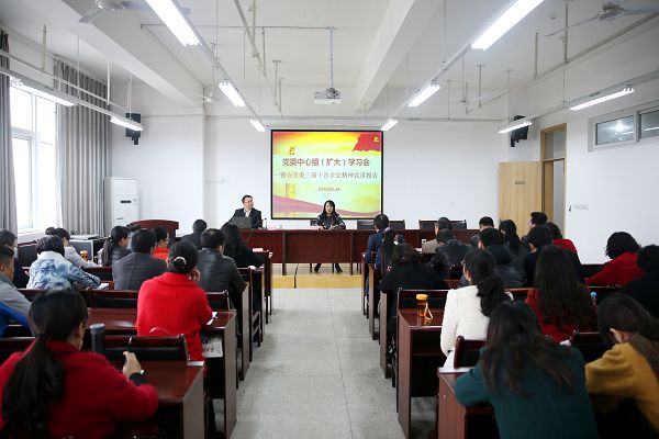 【本网讯】为深入学习宣传贯彻市委三届十次全会精神,结合学院创新深化内涵建设,引导广大干部、教职工把思想统一到市委全会精神上来,把力量凝聚到落实市委和学院党委的决策部署上来,3月28日下午,在青年路校区图书综合楼903会议室,学院党委召开中心组(扩大)学习会,邀请市委宣讲团成员、雅安市委党校纪委书记倪子尧来院作学习贯彻雅安市委三届十次全会精神全会精神宣讲报告。党委班子成员、中层干部、各党支部支委、各团总支书记、民主党派负责人、思政部教师参会。报告会由党委副书记付洪涛主持。