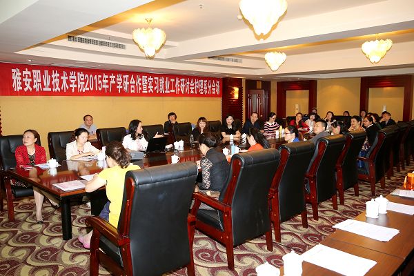【本网讯】5月21-22日,学院2015年产学研合作暨实习就业工作研讨会隆重召开。市政府副市长徐旭、市教育局副局长王瑞华、市旅游局副局长朱波、市经信委机关党委书记黄晓玉及学院领导班子出席了大会。来自省内外医疗卫生、文化教育系统、药品生产销售企业、旅游酒店行业、机电汽车企业60余家合作单位的130余名嘉宾代表相聚雅安,就产学研、实习就业工作展开合作、交流与探讨。