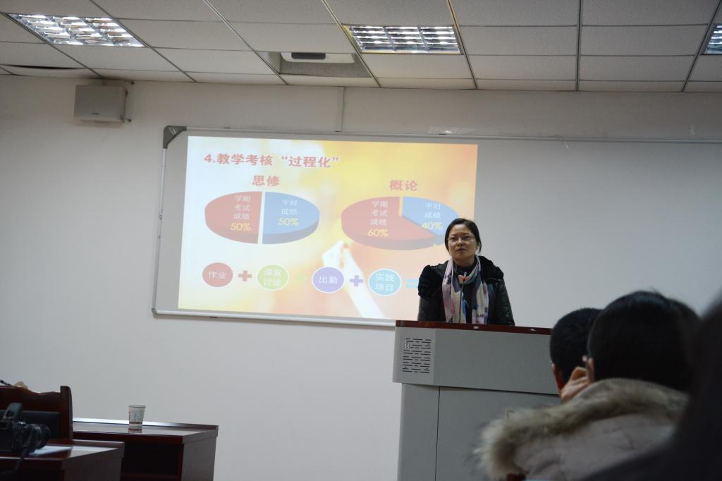 思政部主任李霓向大会介绍了我院思政课建设的基本情况和建设成效。在论文评选中,我院思政部教师高晓明、李霓、洪松林的《高职院校社会主义核心价值观教育的心理学探讨》,吕登蓉、李霓、洪松林的《浅析中国共产党领导人民实现中华民族复兴的“中国梦”发展战略》两篇论文分获一等奖和二等奖,体现了思政部教师较高的教学科研能力。来自成都纺织高专和成都职业技术学院的两名老师在会上做了精彩的说课展示。