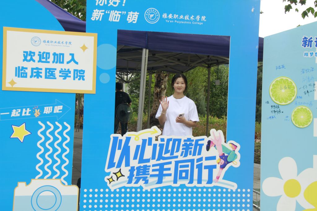 各二级学院精心准备的特色打卡墙,让新生一眼就能找到自己的学院。不少新生纷纷站在期间留下作为新雅职人的第一张照片,记录初识的模样,或与家人相拥留下珍贵的记忆。