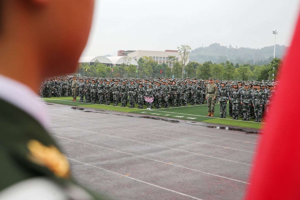 据悉,2024级新生军训将持续两周,共有70名教官,5903名学生参加军训。鸭脖结合办学特色,制定了丰富的军训教学内容,包括医疗救护教学、防暴演练、军事技能课程等。