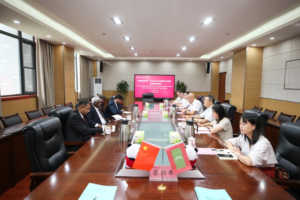 双方在热情、友好的氛围中达成了中国-马尔代夫文化协会与学校关于在马尔代夫建立海外学院、与马尔代夫国立大学开展校级交流合作意向,并签署文化交流与知识共享合作谅解备忘录(MOU)。此次意向的达成,是学校积极落实《国家职业教育改革方案》、《推进共建“一带一路”教育行动》的重要举措,也是学校持续推进“新双高”院校建设的重要成果,为学校“走出去”拓展海外办学新路径迈出了坚实的一步。此次合作高度契合我国职业教育国际化发展战略和学校“十四五”发展规划,必将进一步推动双方在人文交流、职业教育国际化领域的高质量合作与交流。