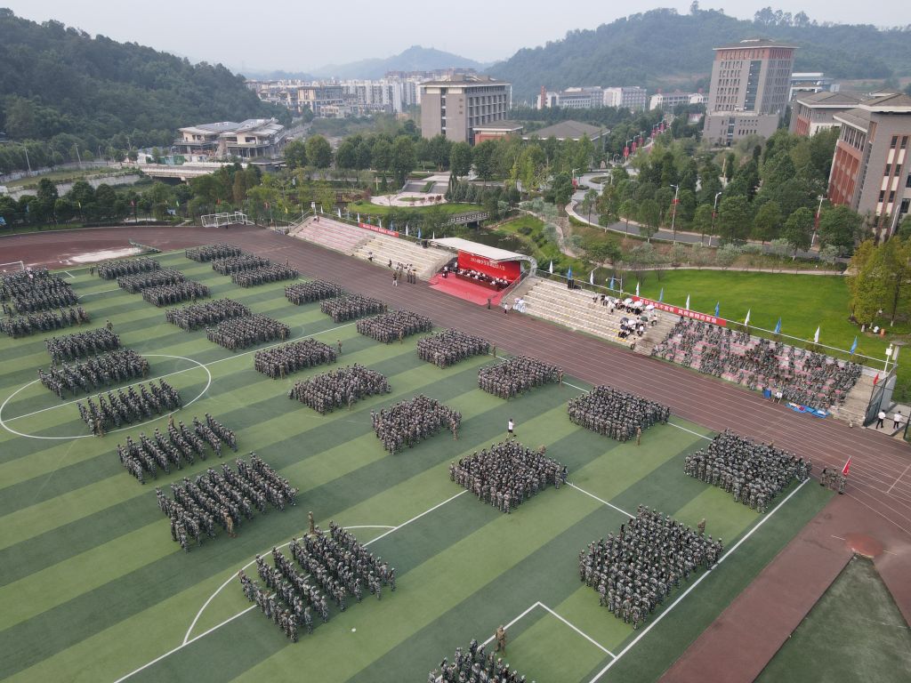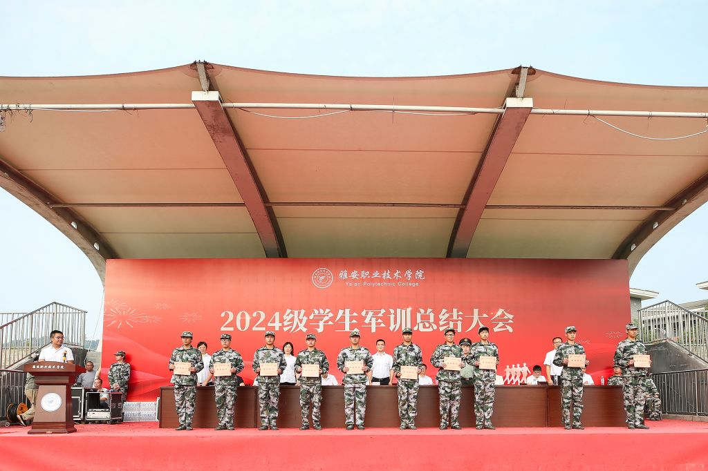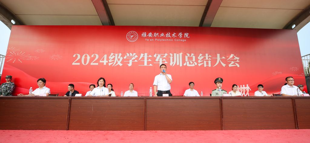 9月27日, 2024级学生军训总结大会在经开区校区和青年路校区运动场隆重举行。学校党委书记李春模,党委副书记、校长黄诚,雅安市雨城区委常委、区人民武装部上校部长王军,名山区人民武装部上校部长魏友旭及在家的党政领导班子成员出席大会,相关职能部门和二级学院负责人、全体参训教官和5900余名新生一起参加大会。