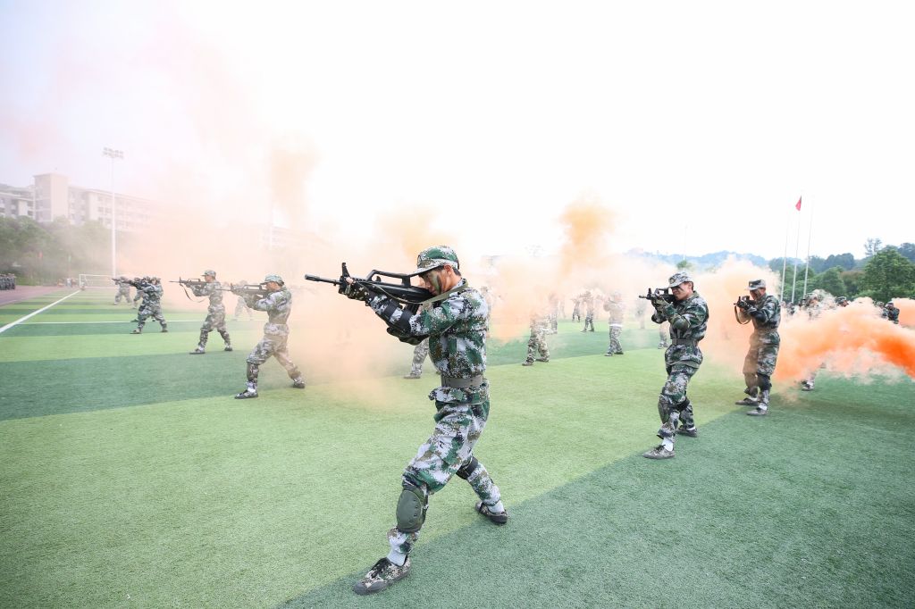 在军训汇报及成果展示中,同学们英姿勃发,口号响亮,依次经过主席台接受检阅。每一步铿锵的步履,都踏出青春的豪迈与坚定,充分展现了昂扬的精神面貌。擒敌拳方队、匕首操方队、战术方队、应急救护方队军训特色汇报表演赢得了阵阵掌声。