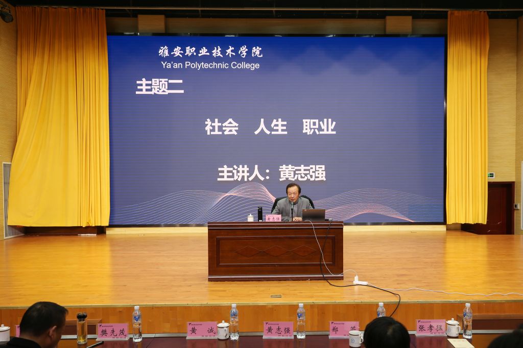黄志强以《社会· 人生· 职业》为主题,从正确处理社会关系开始,结合中国传统文化以及哲学,谈到了要树立正确的人生定位,不断修身学习,规划好职业的定位、选择和未来发展,并结合自身丰富经历提出许多宝贵的意见和建议。