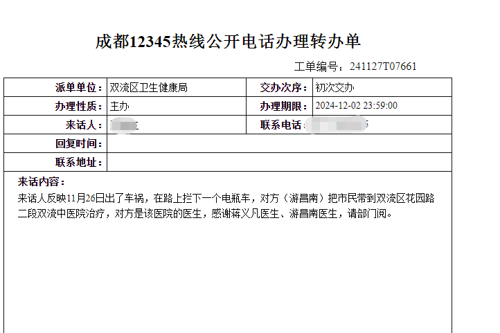 (说明:当事群众因情况紧急没记清楚实习生名字,误报为“游昌南”,实为“游晶澜”)