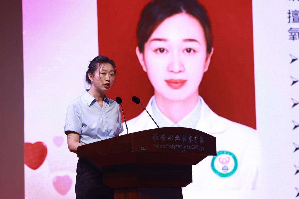 2024年世界职业院校技能大赛总决赛争夺赛护理技能大赛银奖得主杨梦作为优秀学生代表发言。她深情回顾了自己的学习、参赛以及备赛历程,分享了其中的挑战与收获。她表示,这段宝贵的成长经历使自己更加坚定了在护理道路上前行的决心,将以更专业的知识和更热忱的心守护生命健康,不辜负学校的培养与期望。