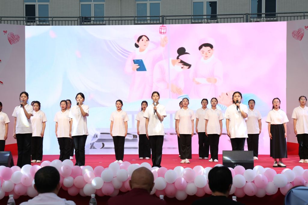 5月12日,学校2025年“5.12”护士节晚会暨职业教育活动周启动仪式在青年路校区体育场举行,学校党委书记李春模,党委副书记、校长黄诚,党政班子成员、相关职能部门负责人及护理学院师生2500余人参加活动。活动通过视频方式在线上同步直播。
