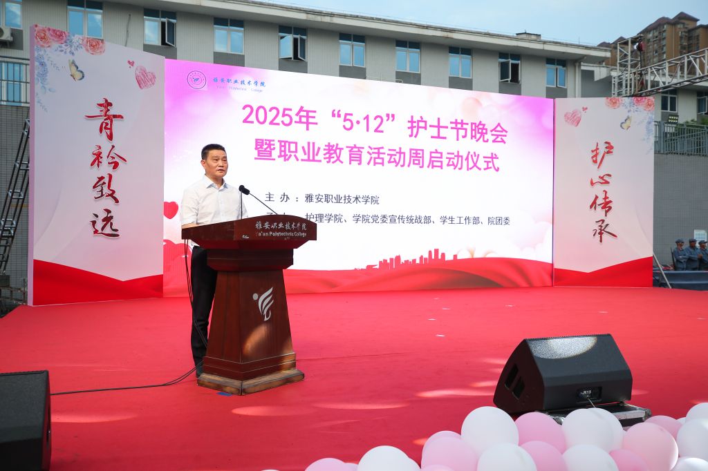 启动仪式上,李春模代表学校党委向辛勤耕耘在护理教育一线的教师和坚守在临床岗位的护理工作者致以诚挚的节日问候和崇高敬意。李春模指出,护理工作承载着守护生命、传递大爱的崇高使命,学校护理学院70余年办学培养的学生有力支撑了川西乃至全省基层医疗卫生事业发展。他寄语广大师生,要坚持以南丁格尔精神为内核,以榜样为力量,无愧于“白衣天使”的称号,不断提升专业技能和职业素养,以精湛的医术和高尚的医德服务患者,为推进“健康中国”建设、增进人民健康福祉作出新的更大贡献。