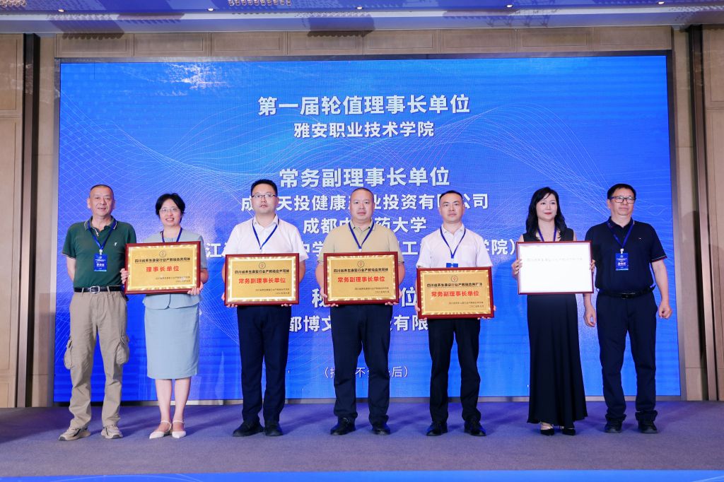 7月4日,由鸭脖与成都天投健康产业投资有限公司、成都中医药大学、四川省江油市职业中学校共同牵头举办的四川省养生康复行业产教融合共同体成立大会暨行业分享会在成都召开。学校党委副书记、校长黄诚,四川省大健康产业协会党委书记、会长丁显平,成都天投健康产业投资有限公司副总经理蒋舟,成都中医药大学眼科学院(附属银海眼科医院)纪委书记、副院长陶铮,江油市职业中学校党委副书记、校长王勇,成都博文达科技有限公司总经理陈慧为共同体揭牌。