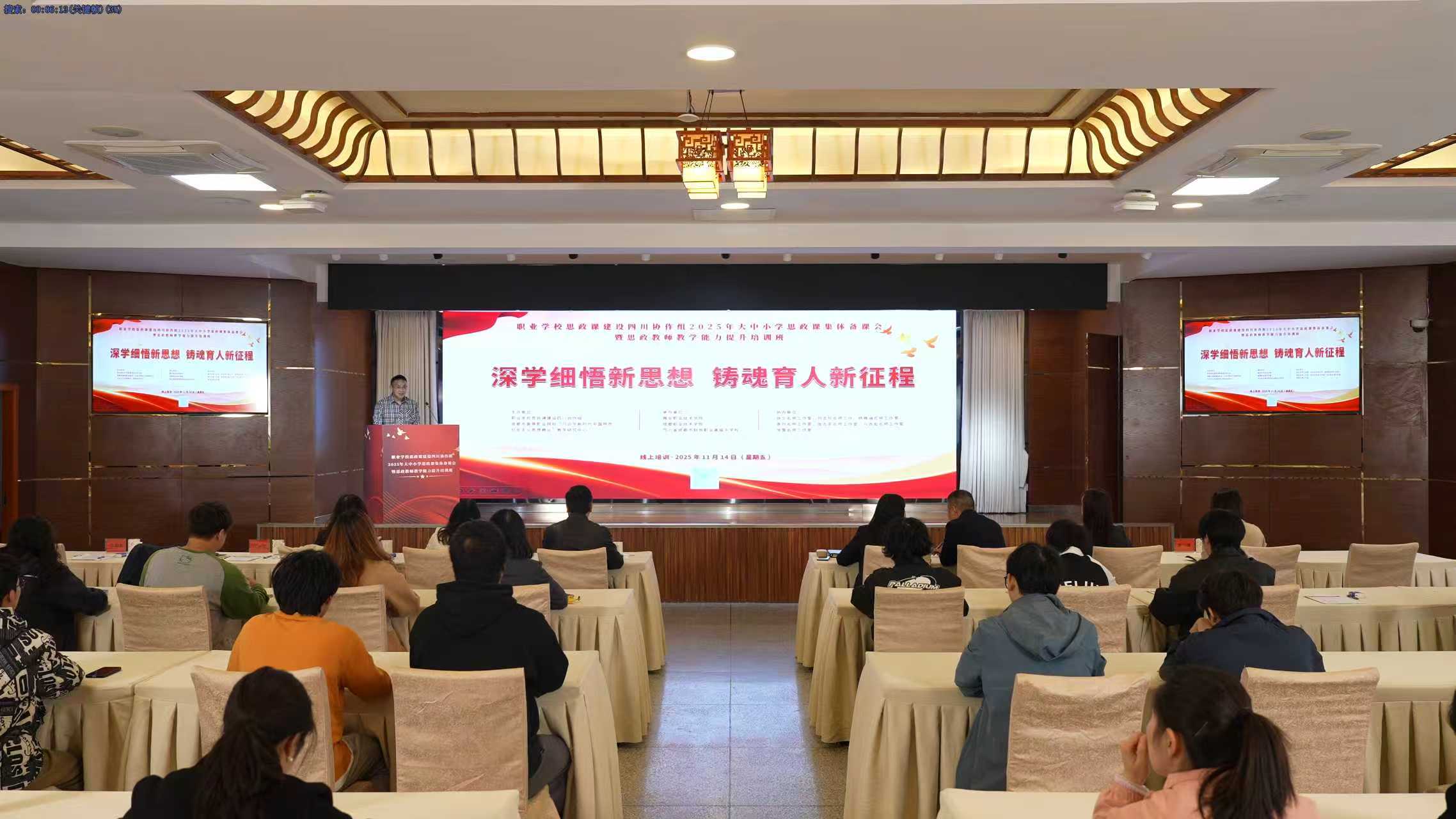 为深化大中小学思政课一体化建设,提升教师专业化水平,11月14日,四川省职业学校思政课建设协作组举办了“深学细悟新思想 铸魂育人新征程”大中小学思政课集体备课会暨思政课教师教学能力培训班。培训采用线上线下结合形式,设置雅安、成都两个线下会场并同步线上直播,川渝两地三百余名大中小学思政教育工作者参加培训。