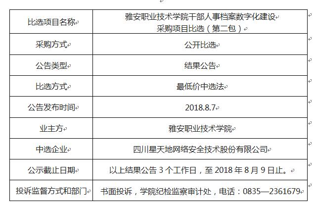 上一条:雅职院青年路校区监控中心机房气体消防系统、学生食堂自动灭火系统采购(含安装)项目比选评审结果