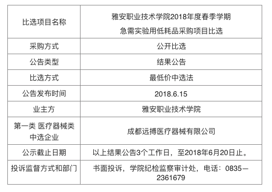 上一条:雅职院2018年度春季学期急需实验用低耗品采购项目比选公告
