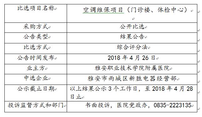 下一条:雅职院附属医院关于消防维保项目的比选结果公示