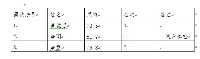 一、面试考核成绩及进入体检人员名单
