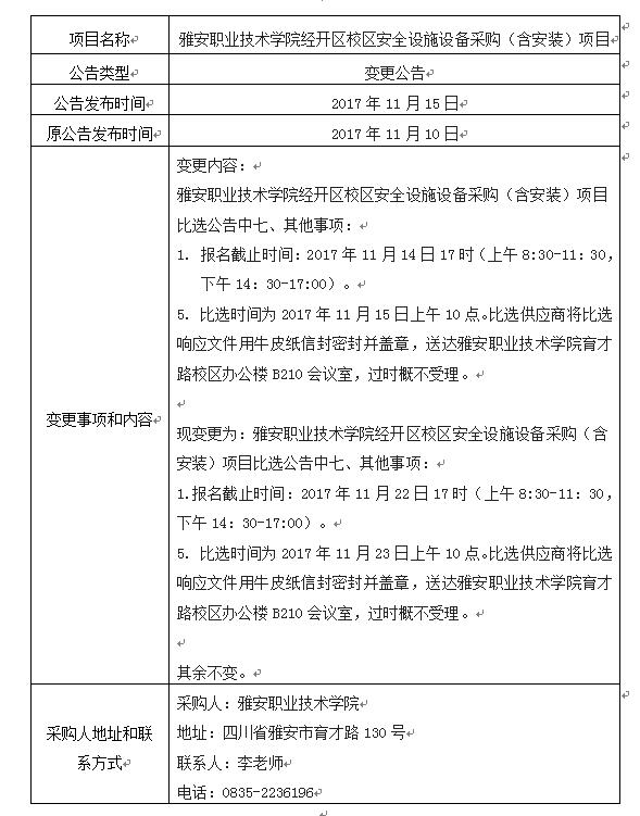 上一条:雅职院2017、2018年教育系学生服采购公开比选评审结果的公示