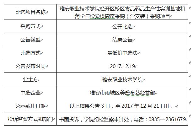 下一条:雅职院经开区校区食品药品生产性实训基地和药学与检验楼窗帘采购(含安装)项目比选公告